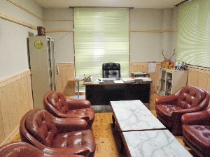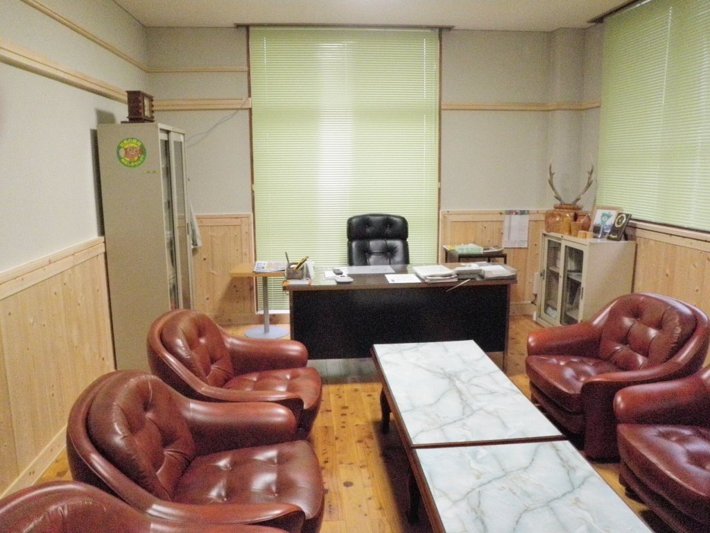 また、組合長室は、対州ヒノキのフローリング(圧密加工)、壁板を